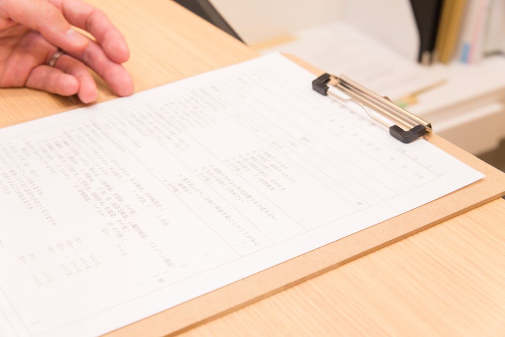 初診の方は問診票のご記入があるため、なるべくご予約の10分前を目安にお越しください。 ご来院いただきましたら、受付にお声がけください。 問診票はご希望やご不安な点、口頭では伝えにくい内容でもお気軽にご記入ください。
